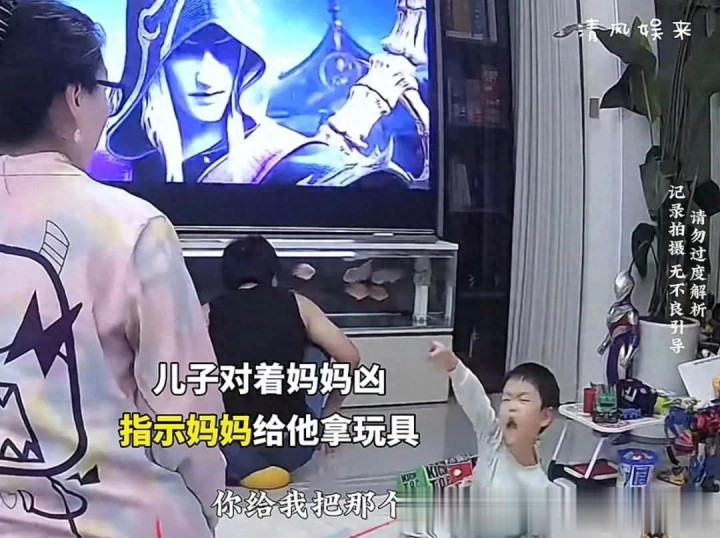 儿子让妈妈拿玩具,不光拿手指人,语气还挺冲:“你把那个给我拿过来”。